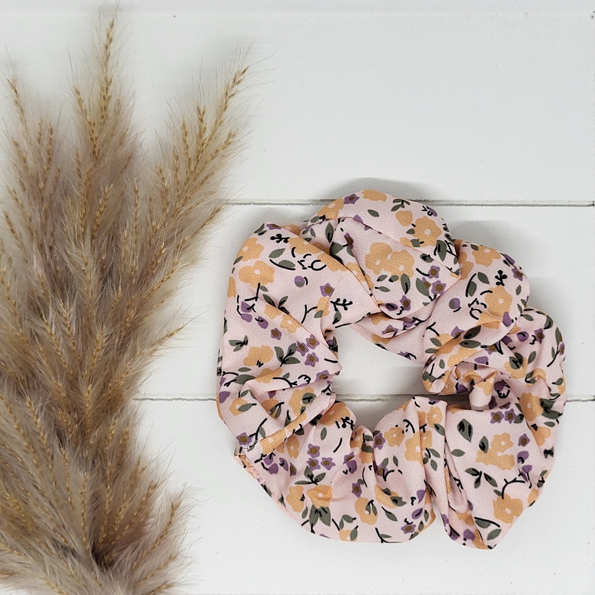 Scrunchie - lichtroze bloemen