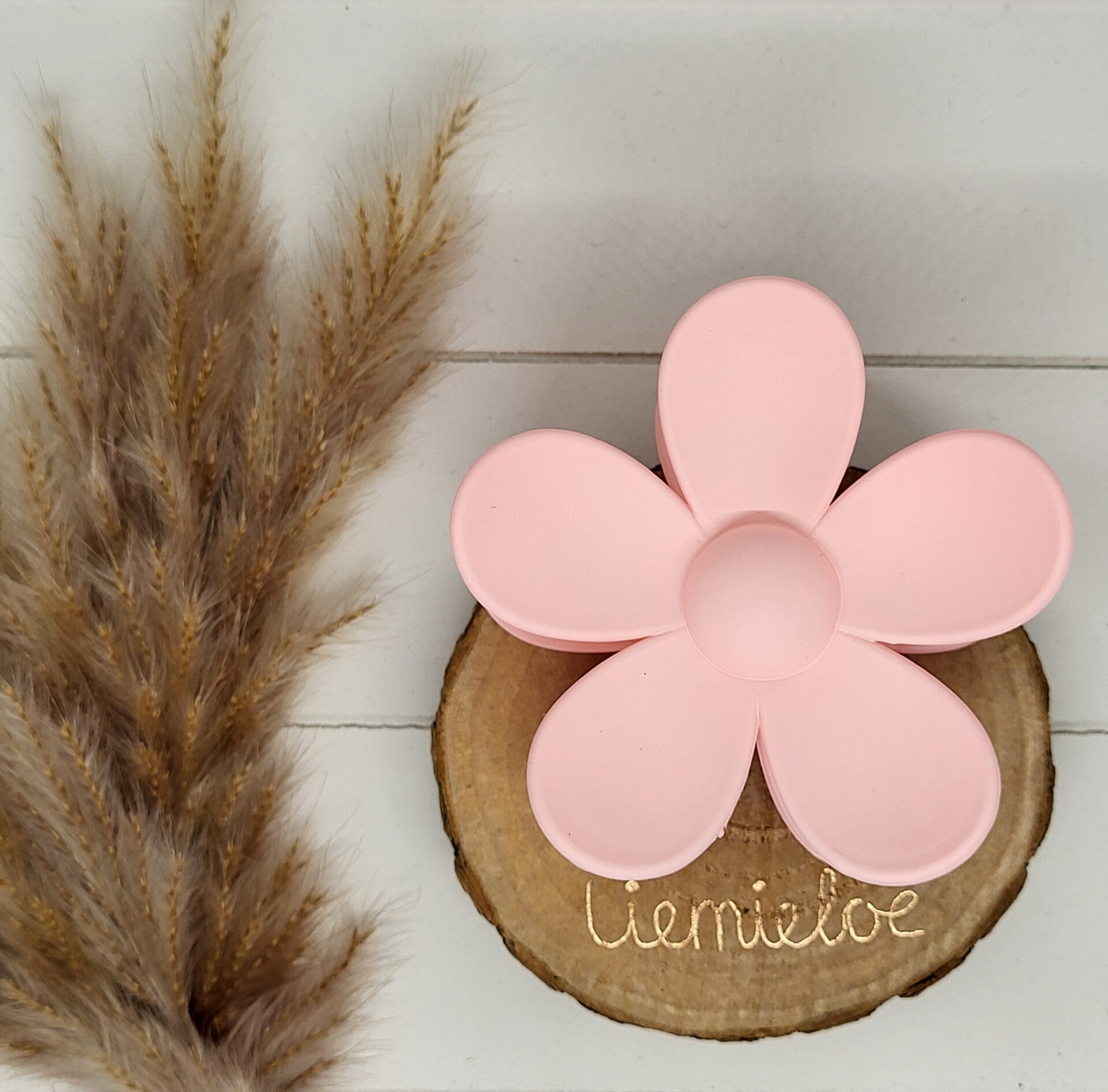 Deze grote haarklem is geschikt voor de vollere haarbos, ook voor volwassenen. Leuk om je haar mee op te steken of in combinatie met een hoge staart. De bloem is ongeveer 7 x 7 centimeter en heeft een stevige grip. Beschikbaar in diverse kleuren.