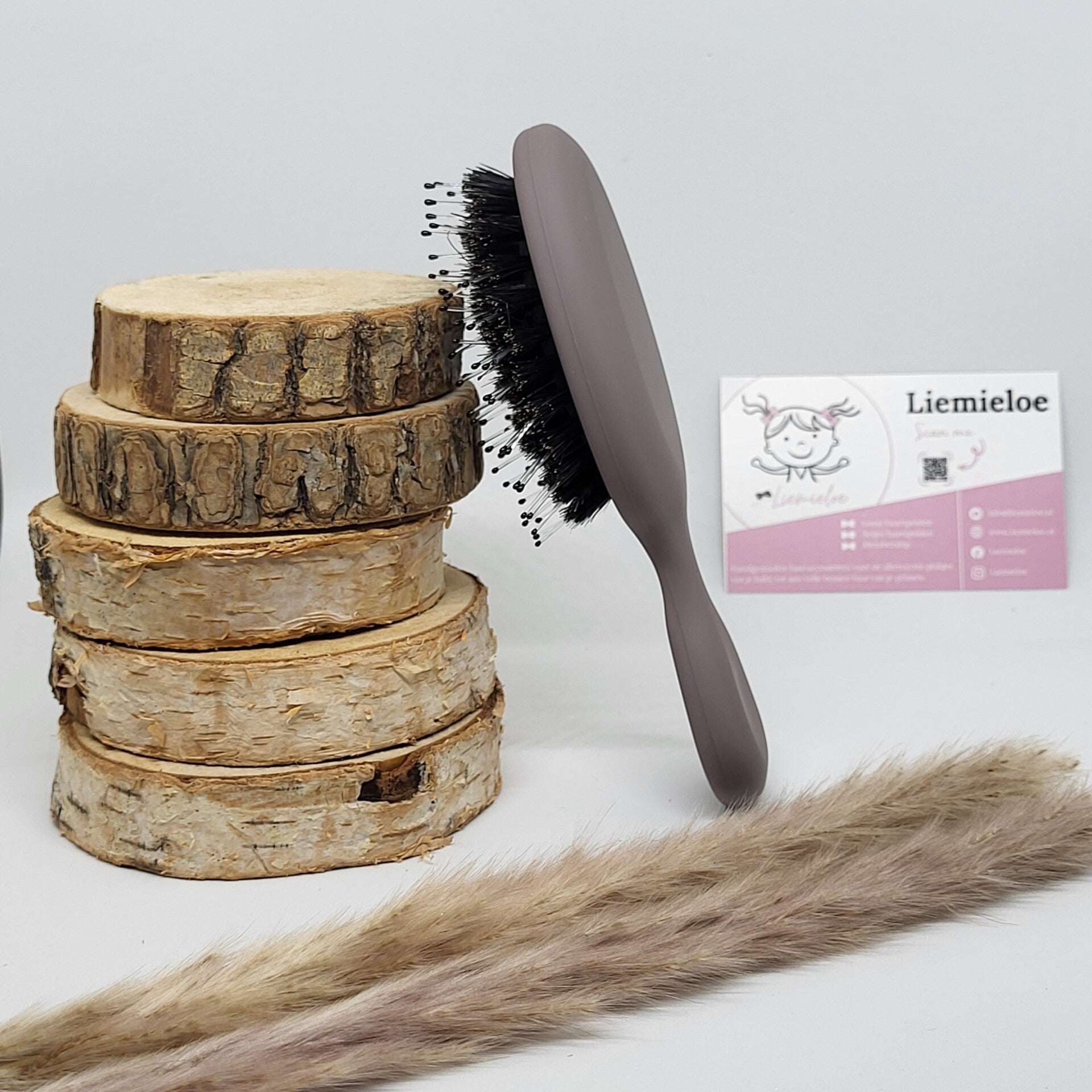 Haarborstels: iets wat je elke dag nodig hebt! Deze kleine borstel ligt lekker in de hand en is heel fijn voor de haren van je mini. De borstel heeft een lengte van 14 centimeter. Dit formaat past ook heel goed in je tas of rugzak van je mini. Beschikbaar in verschillende kleuren en tegen een kleine meerprijs te personaliseren net naam!