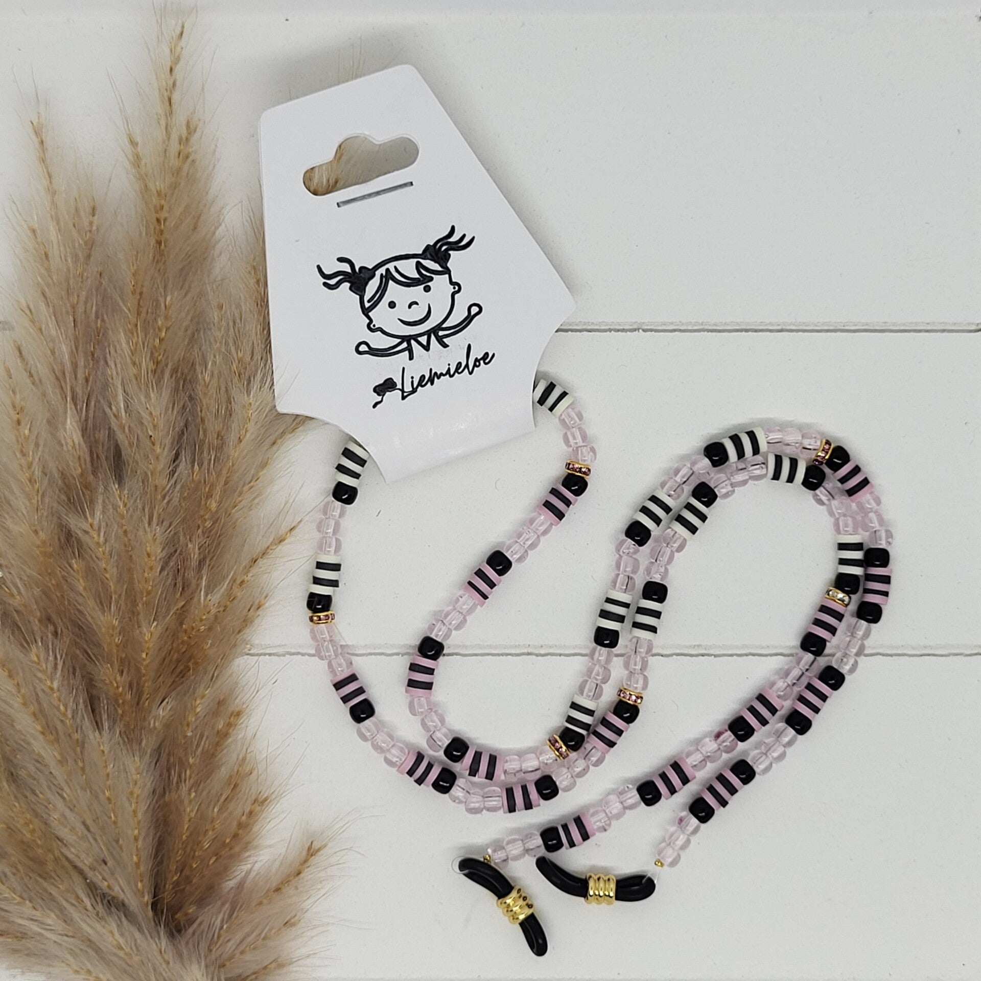 Zonnebrilkoord - zwart/roze/wit
