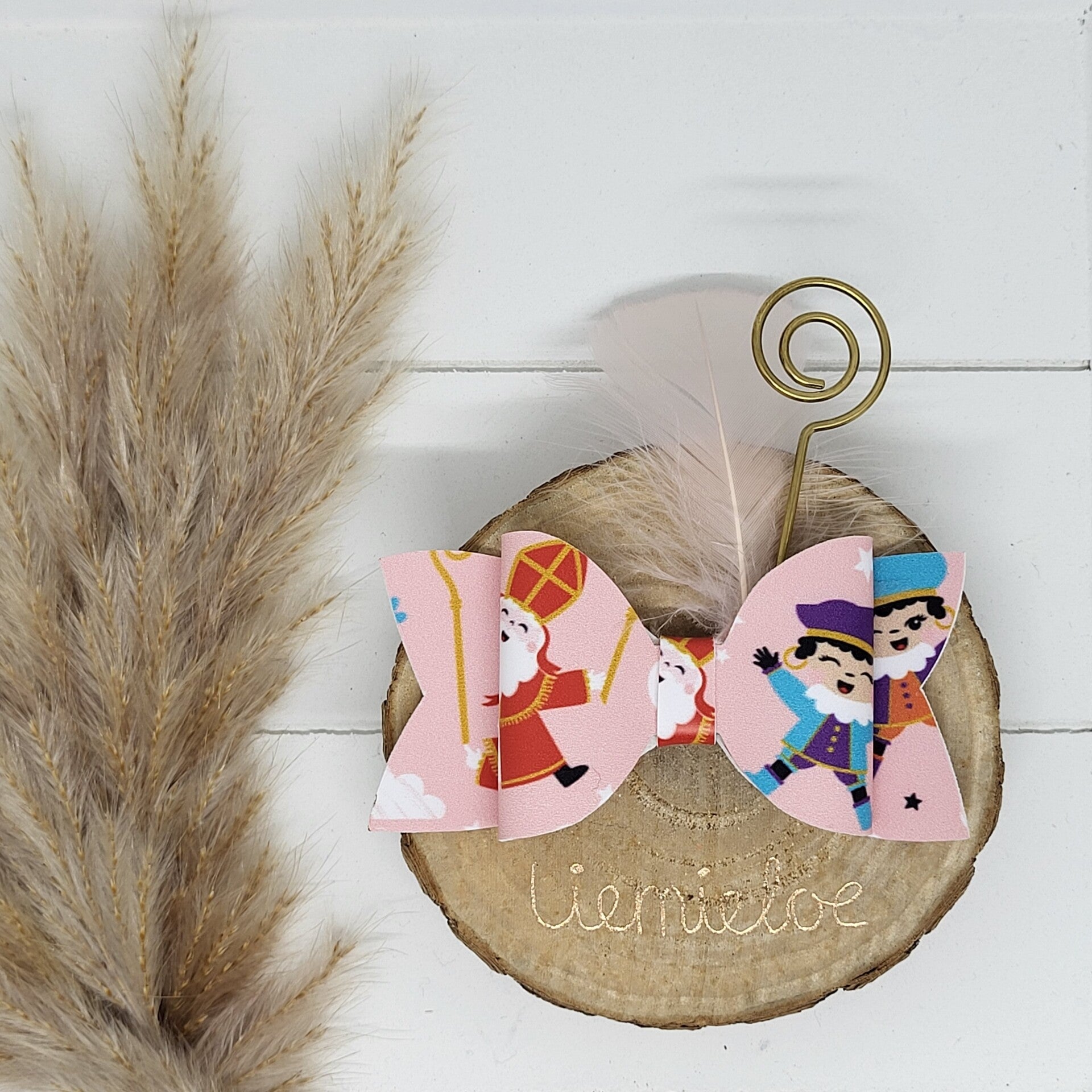 Sinterklaas haarspeld groot - Sint en Piet roze