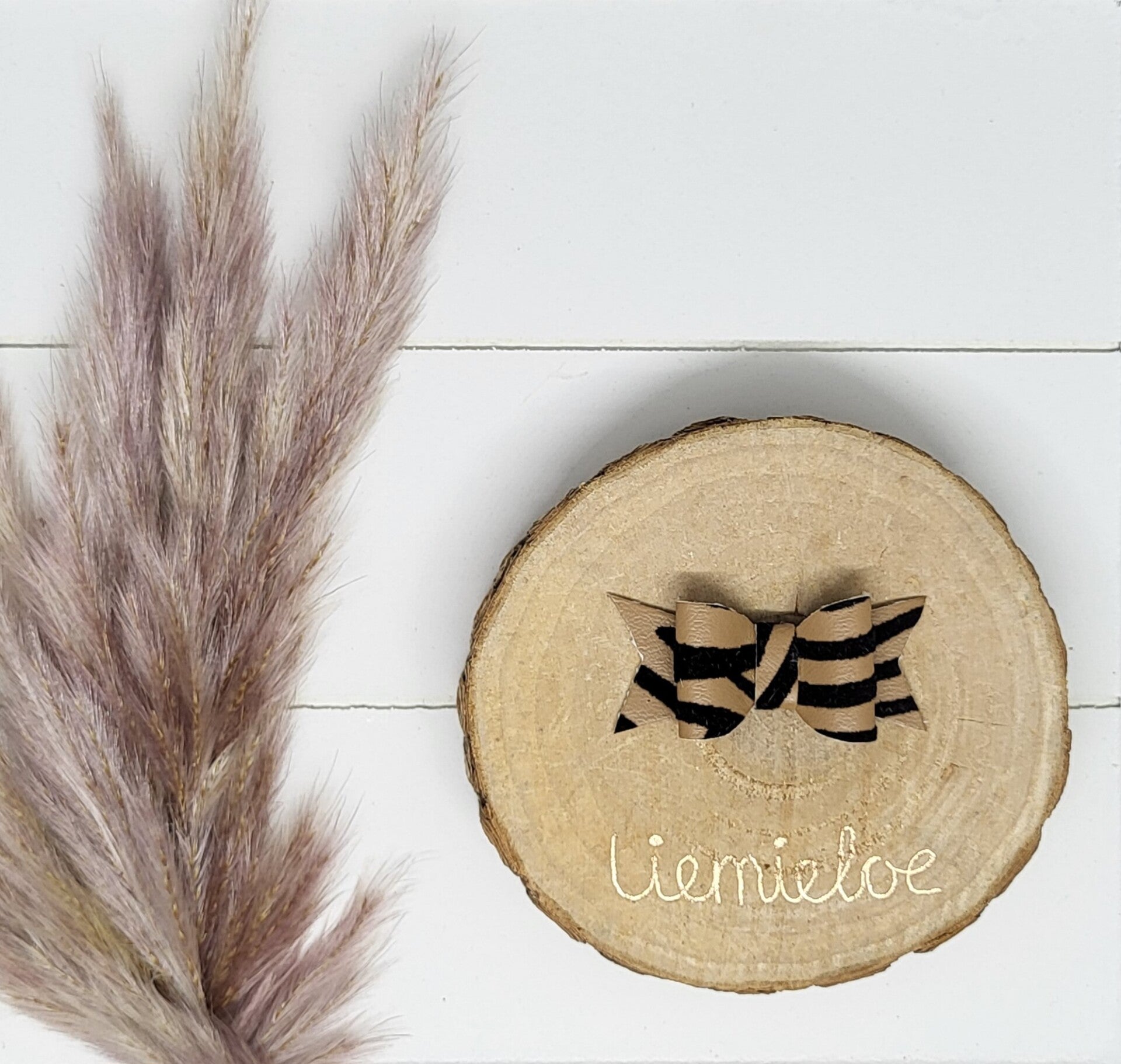 Haarspeld Amy op een alligatorspeld of antislip speldje. Deze haarspeld kan gemaakt worden in diverse kleuren en in de maten 4 tot en met 7 centimeter.